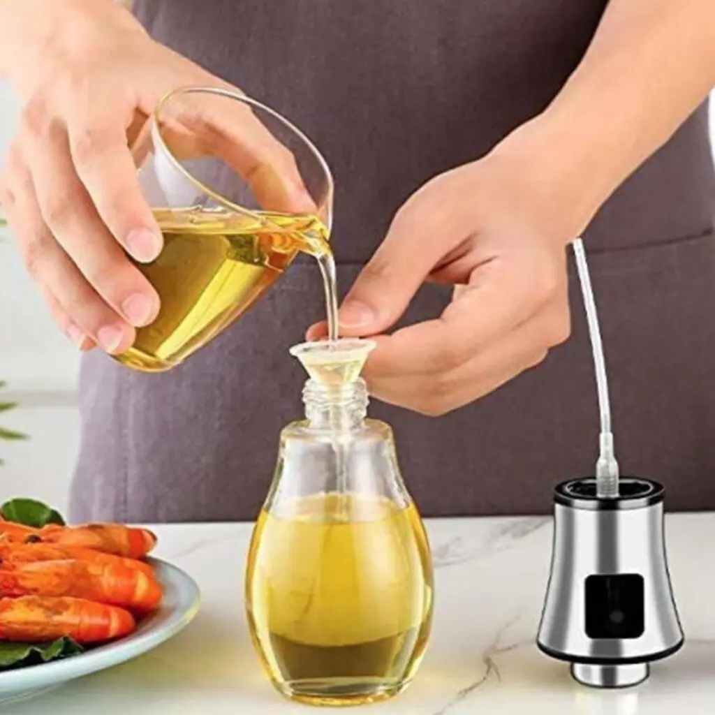 Dale un toque práctico y elegante a tu cocina con la Botella Dispensador Aceitero Ovalado 200 ml. Su diseño moderno y funcional permite verter la cantidad justa de aceite sin derrames, manteniendo tus preparaciones más saludables y tu cocina más limpia. Compacta y fácil de manipular, es ideal para uso diario en la mesa o durante la cocción, combinando estilo y practicidad en un solo accesorio.