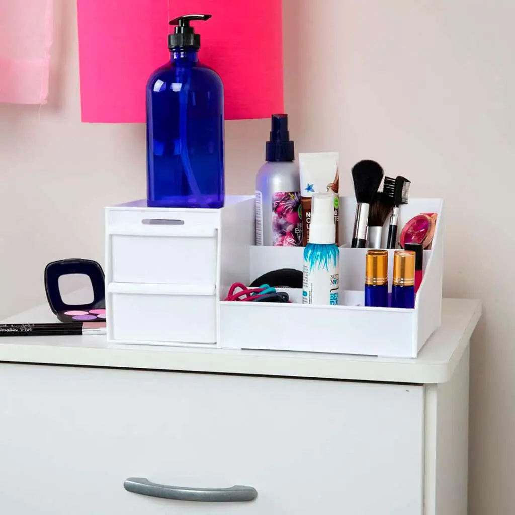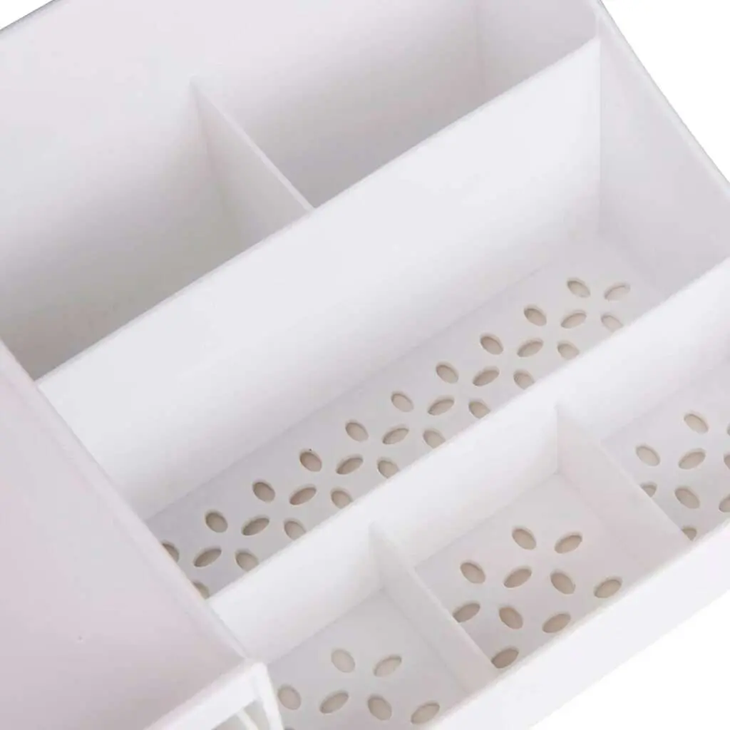 Mantené tus productos de belleza ordenados y tu escritorio limpio con este organizador blanco clásico. Con compartimentos diversos, permite guardar cómodamente maquillaje, brochas, cremas, cremas de manos, delineadores u otros accesorios, todo al alcance de tu mano. Su diseño blanco visualmente armonioso se integra bien en baños, dormitorios o escritorios, aportando orden sin ocupar mucho espacio.
