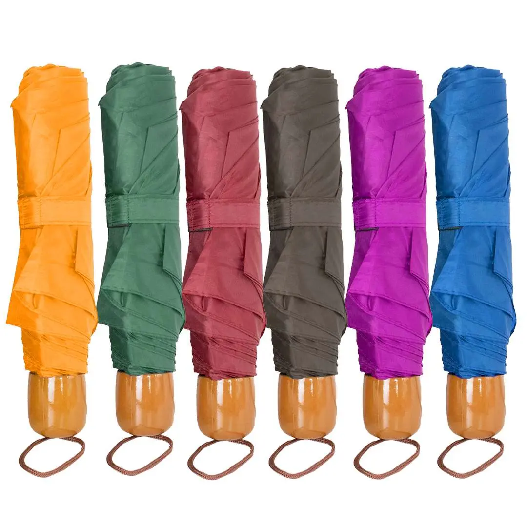 Paraguas Corto Liso con Mango de Madera
