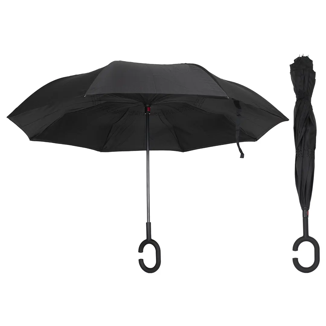 Paraguas de Tela Invertida 60 cm con Mango en C Negro